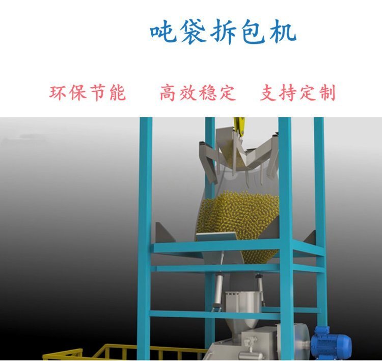 噸袋拆包機(jī)用來(lái)實(shí)現(xiàn)袋裝散裝物料的卸料功能,為半自動(dòng)操作。將噸包中的原料高效、環(huán)保、節(jié)省人工的卸放到客戶指定設(shè)備中的設(shè)備。傳統(tǒng)的噸包到料方式是直接解開或者劃開噸包,將物料直接傾倒至客戶設(shè)備進(jìn)料口,造成粉塵大面積分散,對(duì)環(huán)境及操作人員都存在危害,碰到有易爆的原料,如淀粉、面粉等,會(huì)增加粉塵爆炸的可能性。噸袋開袋機(jī)解決了這一問(wèn)題。我們根據(jù)用戶使用的噸包尺寸、類型、現(xiàn)場(chǎng)工況,為客戶選擇所需拆包機(jī)的型號(hào)。