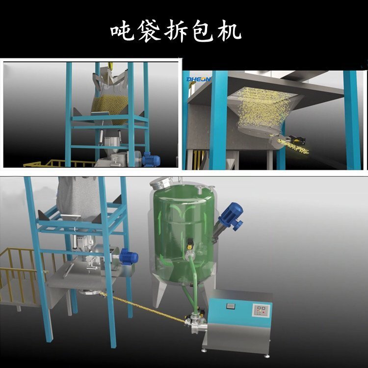 01 | 密閉夾袋式 | 可回收 | 拆包機(jī)氣動(dòng)壓袋結(jié)構(gòu),將噸袋出料口壓住,形成密封。然后解開噸包封口處,進(jìn)行密閉卸料。 |